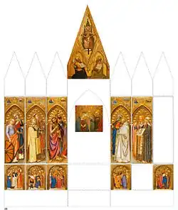 Учёные до сих пор спорят о времени его создания; наибольшую поддержку имеет точка зрения, что полиптих был расписан в 1360-х годах – в период расцвета творчества художника. Любопытной особенностью полиптиха являются изображения картин сотворения мира в верхней части панелей среднего яруса. Реставрационные работы, проведенные в 2006-08 годах, открыли зрителям превосходные яркие краски, которыми оперировал мастер. Структура и конструкция полиптиха очень близки полиптиху из Прато, который художник расписал в 1355 году.