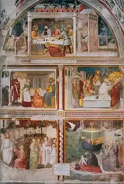 Капелла Ринуччини посвящена Рождеству Марии и св. Марии Магдалине. Программа росписей представляет собой эпизоды из их жития. На северной стене изображены: «Изгнание Иоакима из храма», «Сон Иоакима», «Встреча Иоакима и Анны у Золотых ворот», «Рождество Марии», «Введение Марии во храм», «Обручение Марии». На южной стене: «Пир в доме Симона Фарисея», «Христос у Марии и Марфы», «Воскрешение Лазаря», «Noli me tangere», «Чудесное нахождение ребёнка», «Воскрешение жены правителя по молитвам Марии Магдалины». Свод капеллы украшен изображениями четырёх пророков и медальоном с благословляющим Христом, который написан на дереве и прикреплён к потолку. Над входом располагаются полуфигуры двенадцати апостолов со скрижалями, на которых изображён символ веры. На пилястрах слева фигуры св. Франциска и св. Антония, справа – св. Людовик Тулузский и св. Андрей из Ананьи.