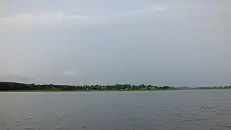 - Вниз по протоке, вытекающей из Иннокентьевского озера, вдали Иннокентьевский утёс. За утёсом — протока Иннокентьевская и село Иннокентьевка.