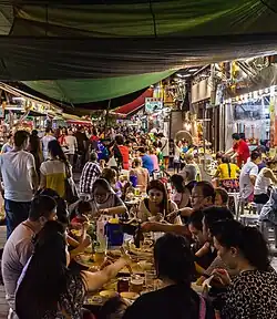 Кварталы вокруг ночного рынка на Темпл-стрит знамениты поддельными товарами, проституцией, гадалками и дешёвыми труппами кантонской оперы[2].
