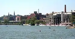 - Первый коммутатор Александра Грэма Белла для Bell System находился недалеко от канала; здание по сей день используется в качестве телефонной станции. Из-за многочисленных судебных тяжб по патентным делам Белл переехал в Джорджтаун, а позднее создал там Лабораторию Вольта[64] .