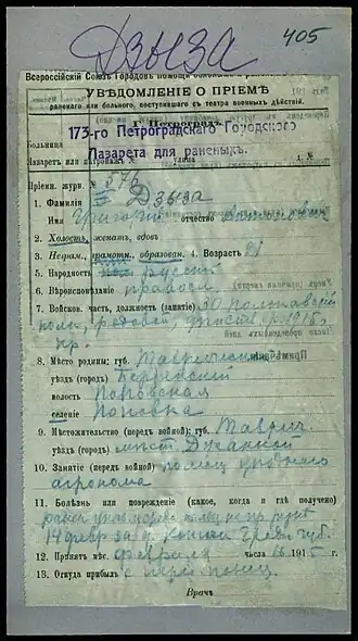 | Сражения/войны | Первая мировая война, Гражданская война в России |