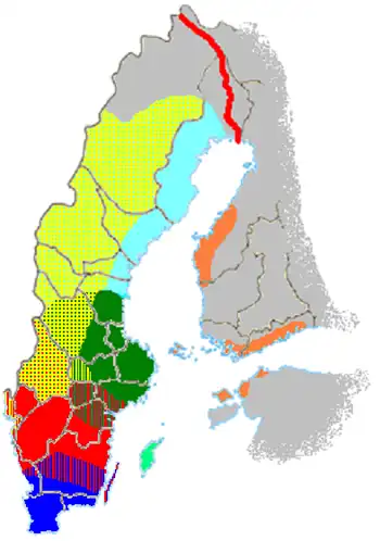 - Прочие — Емтланд, Херьедален, северо-запад Хельсингланда, Бохуслен:
