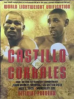 - ↑ Diego Corrales Vs Jose Luis Castillo 2005. http://boxingscorecards.com/ (5 мая 2005). Дата обращения: 31 мая 2019. Архивировано из оригинала 30 мая 2019 года.