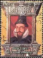 Перуанская почтовая марка с портретом Лопеса де Суньига