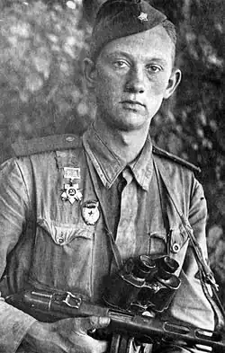 С третьего курса Карачижско-Крыловского лесохозяйственного техникума[2], 19 июня 1941 года был призван в ряды Красной армии и встретил войну в солдатском эшелоне, в пути к месту службы. Воевал на Северо-Западном, Сталинградском, Степном, 2-м и 4-м Украинском фронтах.