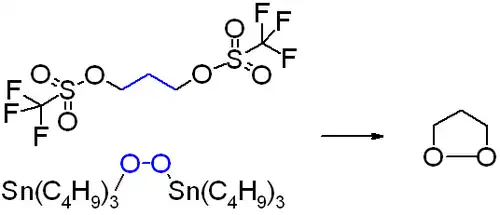 1,2-диоксоланы и их производные является циклическими пероксидами, и поэтому нестабильны: сам 1,2-диоксолан устойчив только до 35 °C. Его производные легко разлагаются при нагревании и облучении[8]. Их получают по следующим схемам:
