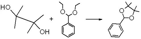 Перевод в 1,3-диоксоланы является защитой для альдегидов и кетонов[2] или 1,2-диолов[3], поскольку они устойчивы к действию оснований и устойчивы в нейтральной среде.