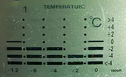 Позволяет приблизительно (с точностью до веса деления) оценить уровень сигнала по количеству или положению элементов индикации на дискретной шкале. Выполняется в виде набора единичных индикаторов (элементов шкалы), расположенных вдоль прямого или криволинейного отрезка. Индикация уровня сигнала на таком устройстве производится включением одного или последовательности рядом расположенных элементов. В первом случае, индикатор показывает уровень сигнала положением одного элемента — чем дальше от начала шкалы, тем больше уровень (шкала без заполнения). Во втором случае, уровень сигнала показывается включением всех элементов от начала шкалы до действующего значения (шкала с заполнением). Чем больше элементов содержит шкала, тем более точно можно оценить уровень сигнала.