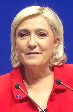 В феврале 2015 года, президент Общества Лиза Виден пригласила Марин Ле Пен, лидера правоконсервативной националистической партии Национальный фронт, выступить перед Обществом, в виду популярности Национального фронта во французских опросах на тот момент. Это вызвало полемику с обвинениями Ле Пен в поддержке антисемитизма и исламофобии. Речь прошла как и планировалась, хотя была задержана протестующими, блокировавшими главный вход Общества и краткосрочно ворвавшихся в здание. В общей сумме, на протесты пришло 400 человек. Реакция Дискуссионного общества вызвала значительные споры с заявлениями, что Дискуссионное общество косвенно поддержало протестующих и не соответствующе отреагировало на угрозы насилия в адрес членов Общества, которые пытались посетить выступление Марин.