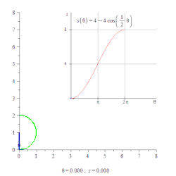 Длина дуги циклоиды (s) в зависимости от её параметра (θ)