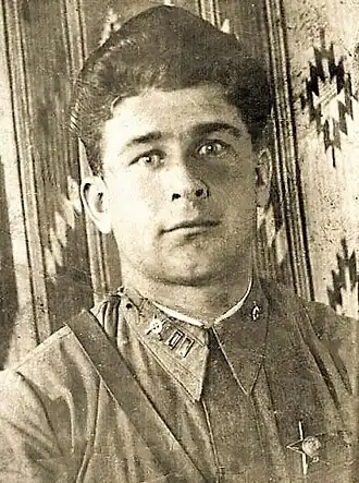 После отхода дивизии на левый берег Днепра, в сентябре 1941 года возглавил разведывательный отряд, ночью форсировавший Днепр на лодках и подручных средствах, выявивший расположение огневых точек противника и атаковавший немецкие войска при поддержке артиллерии[1].