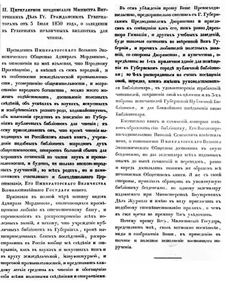 9 (22) мая 1834 года в доме Дворянского собрания города Екатеринослава была открыта Губернская публичная библиотека. Она была создана благодаря вышедшему циркуляру Министерства внутренних дел «О заведениях в губерниях публичных библиотек для чтения», который был разослан в 1830 году во все губернии Российской империи.