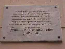 Фёдор Иванович Добыш (1906—1980) — советский военный деятель. Участник Японо-Китайской, Советско-финской и Великой Отечественной войн. Один из создателей Ракетных войск стратегического назначения. Генерал-полковник (1962). Командующий 50-й ракетной армией.