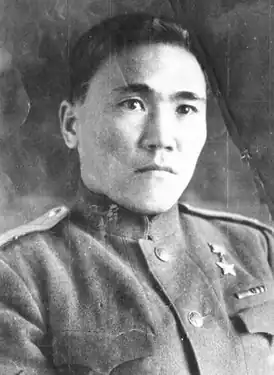 Рядовой, разведчик взвода конной разведки 957-го стрелкового полка 309-й Пирятинской стрелковой дивизии. 1915 года рождения, хакас, беспартийный. Призван Ужурским райвоенкоматом Красноярского края.