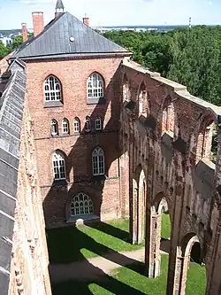 По первоначальному архитектурному плану собор должен был быть базиликой, но последующая пристройка хоров сделала его больше похожим на зальный храм. Первая пристройка хоров и нефа была произведена уже а 1299 году. К 1470 году появились высокие хоры, колонны и арки которых были выполнены в стиле кирпичной готики. Строительство собора завершилось в конце XV века возведением двух массивных башен, имевших высоту 66 м, по бокам от западного фасада. Вокруг собора возвели стену, отделившую резиденцию епископа от остального города.