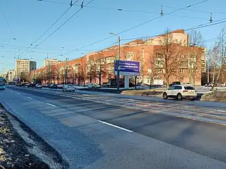 Дом построен в 1988 году С. В. Гайковичем и Л. В. Ченцовой, это пример шумозащитной архитектуры. Вдоль проспекта здание четырёхэтажное, в сторону двора отходят три объёма, постепенно нарастающие до 14 этажей[1]. В объёме у проспекта квартиры трёхкомнатные, окна двух комнат сделаны во двор, на проспект выходят кухня и гостиная[2].