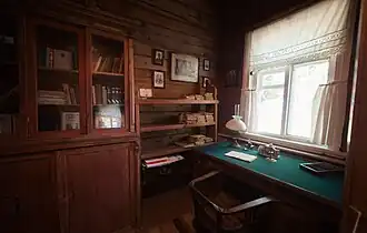 Интерьер выстроен как при жизни поэта: русская и высокая голландская печи, летняя изба с личной библиотекой, столовая и рабочий кабинет.[1]