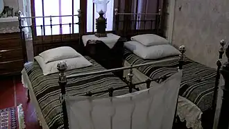 Строительство здания деревянного особняка в Катановском переулке (в царское время он назывался переулком 3-й гимназии[32], в советские годы носил название Школьный[33][3]) Казани краеведы относят к 1913 году[Прим 1]. Здание представляло собой городскую усадьбу в стиле русской эклектики или модерна[34][4]. Иллюстрированный каталог «Объекты культурного наследия Республики Татарстан», вышедший в 2020 году, охарактеризовал здание как образец позднего модерна и подражание фахверку[5]. Оно никогда не перестраивалось, поэтому сохранило архитектурные детали, внутреннюю планировку и отделку помещений. Усадьба первоначально принадлежала племяннице художника Ивана Шишкина Марии Алексеевой[34][4][5]. Особняк занимает площадь 285 квадратных метров, а вместе с мемориальным садиком — 590[1][4][35]. Он является объектом культурного наследия Республики Татарстан в соответствии с Постановлением № 320 Совета Министров Татарской АССР от 27 июля 1987 года[4][35][Прим 2] и Постановлением Кабинета министров Республики Татарстан «О переходе памятников истории и культуры республиканского (Российская Федерация) значения к памятникам истории и культуры республиканского (Республика Татарстан) значения» № 188 от 15 апреля 1993 года[38].