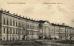 Дом сооружён в 1811 году в стиле классицизма, архитектор Адреян Захаров. Сначала корпус занимал лишь часть участка, а по бокам шло кирпичное ограждение с двумя расположенными воротами. В 1818 году в здании провели ремонт, а в 1866 году вплотную к главному корпусу были пристроены боковые крылья по проекту харьковского архитектора Ф. И. Данилова.[2] На протяжении XIX века и начале XX здесь находилось большинство Полтавских губернских учреждений: губернская управа, «Приказ общественного призрения», казённая палата. В делах службы дом посещал Александр Пальм — русский поэт и драматург, которого в 1868 году перевели в Полтаву управляющим отделения государственного банка.[1]