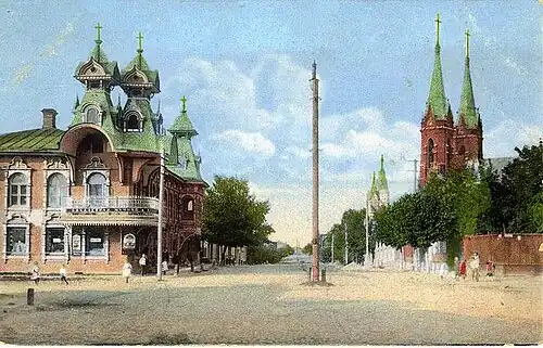 - ↑ Стовичек, Мария Викторовна. Архитектурная среда русской провинции в эпоху модерна (Кострома, Рыбинск, Ярославль) : монография / М. В. Стовичек, М-во образования и науки Российской Федерации, ГОУ ВПО «Ярославский гос. пед. ун-т им. К. Д. Ушинского».. — Ярославль: Изд-во ЯГПУ, 2008.. — С. 51. — 127 с. — ISBN 978-5-87555-3-450-X.