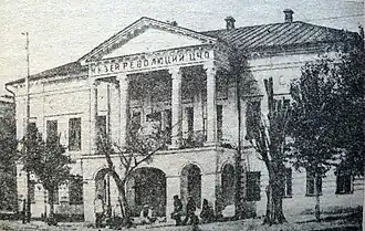 Двухэтажное здание построено в стиле ампир. Фасады здания украшены лепнинным декором и пилястрами. Фронтон поддерживается четырьмя ионическими колоннами.