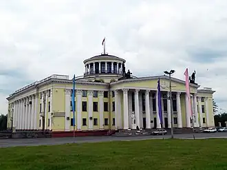 Вестибюль дворца культуры был выполнен из красного и белого мрамора, из которого можно пройти в большое круглое фойе. Над фойе, ставшим основой композиции здания, был расположен зал, ныне называющийся «Президентским». Из фойе можно попасть в другой зал на тысячу человек, читальный зал, спортивный зал и кафе. В пяти залах размещался дом техники. На третьем этаже здания были размещены лекционный и выставочный залы. В многочисленных комнатах находились кружки художественной самодеятельности.