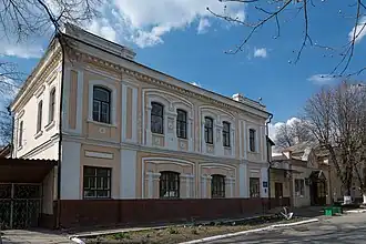 Дом построен в 1878 году. Каменный, двухэтажный на цоколе, прямоугольный в плане дом. Симметричность фасада акцентируют пилястры по обе стороны крайних окон, который завершаются аттиками. Фасад украшен многочисленным декором, например межэтажным и венчающим карнизами, нишами, розетками.
