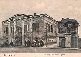 Домовладелец Э. Н. Алафузовв в 1902 году подарил здание Таганрогской общине Красного Креста для устройства амбулатории и больницы, за что был награждён орденом св. Анны 2-й степени. Освящение больницы состоялось 14 мая 1904 года.