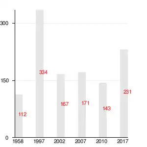 | 1958[9] | 1997[10] | 2007[11] | 2010[12] | 2017[1] |