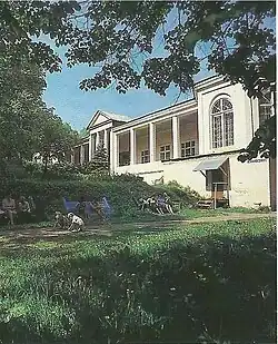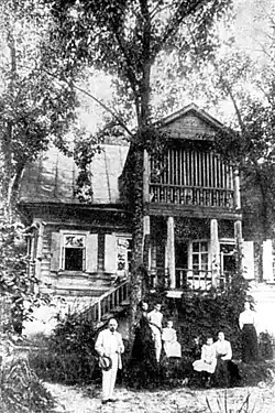 Тарусское земство выстроило дачу в «Песочном» в конце XIX в. и сразу же начало сдавать её внаем отдыхающим из Москвы. В 1892 г. сюда приехала семья профессора Московского университета Ивана Владимировича Цветаева, провела прекрасное лето и с той поры селилась здесь каждый сезон и жила с поздней весны до ранней осени. «Счастливее детства, чем наше в Тарусе, я не могу вообразить,- вспоминала потом младшая из сестёр Анастасия Цветаева. -Вечер. Тот конец Оки — в синей дымке, а другой конец — в ржавом золоте… И мы уже делим: Мусе — этот, синий, с месяцем конец Оки, мне — тот, золотой, с закатом…»