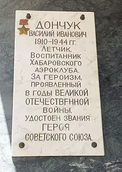 - Мемориальная доска на здании Хабаровского аэроклуба.