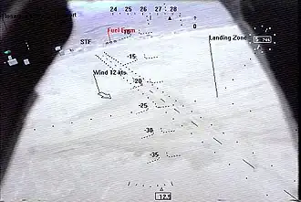 Дисплей экспериментального космического аппарата X-38 с отметками, указывающими на характеристики посадочной площадки