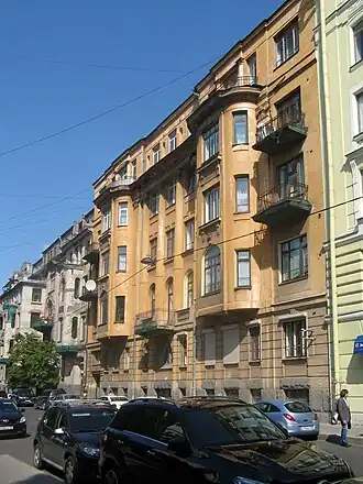 - ↑ Постановление Правительства Санкт-Петербурга № 1021 от 30.12.2019 «Об утверждении Перечня объектов (выявленных объектов) культурного наследия, являющихся жилыми домами, в отношении которых планируется проведение мероприятий по сохранению в рамках подпрограммы „Наследие“ государственной программы Санкт-Петербурга „Развитие сферы культуры в Санкт-Петербурге“». Дата обращения: 7 февраля 2023. Архивировано 9 февраля 2022 года.
