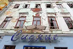 В советское время в данном здании располагались квартиры. Но после того как жильцы были отселены, помещения на протяжении нескольких лет пустовали и начали постепенно разрушаться, использовались только площади первого этажа, а на момент передачи объекта на реставрацию здание уже находилось в аварийном состоянии[1].