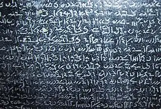 - 1893 — швейцарский египтолог А. Э. Навиль опубликовал текст Палермского камня (ок. XXV в. до н. э., Палермо, музей «Antonio Salinas»), важнейшей находки, своеобразного каменного списка-летописи, с перечислением некоторых правителей додинастического периода, а также фараонов Старого царства с I по V династии. Несколько позднее текст был дополнен из других, небольших по размеру, обломков этого камня (Каирский музей)[31].