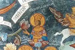 Возможно, Феофан Грек, включая в начале XV в. композицию «Древа Иессеева» в стенопись галереи Благовещенского собора Московского Кремля, «также стремился подчеркнуть избранность московской династии. При возобновлении росписи Благовещенского собора в середине XVI в. „Древо Иессеево“ было дополнено изображениями московских князей. Они оказались помещенными на лопатках храма в одном ряду с пророками и мыслителями и составляют подножие „древа“ как охранители православной веры. Таким образом устанавливалась также генеалогическая параллель между родом Иессеея и родом великих князей московских»[3][4]