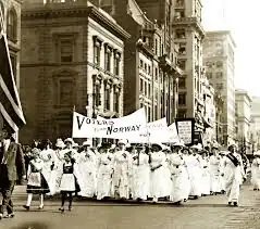 - ↑ Enfranchised are the Norwegian Citizens: Suffrage march in New York 1911. Stortinget. Дата обращения: 16 апреля 2020. Архивировано 12 апреля 2021 года.