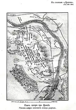 - ↑ Дрисский лагерь // Военная энциклопедия / П. С. Грачёв. — Москва: Военное издательство, 1995. — Т. 3. — С. 134. — ISBN 5-203-00748-9.