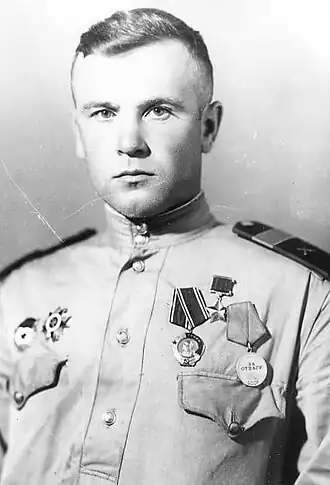 - ↑ Указ Президиума Верховного Совета СССР «О присвоении звания Героя Советского Союза генералам, офицерскому, сержантскому и рядовому составу Красной Армии» от 10 января 1944 года // Ведомости Верховного Совета Союза Советских Социалистических Республик : газета. — 1944. — 19 января (№ 3 (263)). — С. 1. Архивировано 7 декабря 2021 года.
