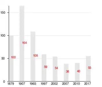 | 1879 | 1909[18] | 1997 | 2007[19] | 2010[20] | 2017[1] |