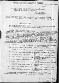 Доношу, что 14 апреля 1944 году, в день вступления Красной Армии в г. Дубоссары Молдавской ССР, куда первой вошла 213 Ново-Украинская СД, органами контрразведки «Смерш» указанной дивизии было получено от местных жителей заявление о чудовищных злодеяниях по уничтожению евреев, а также указывались в заявлении лица, принимающие участие в этих злодеяниях и, что эти лица на момент вступления Красной Армии находятся на месте. Получив такое заявление органами охр. «Смерш» было произведено предварительное следствие и по санкции ВП были арестованы следующие лица, принимающие участие в массовом уничтожении евреев немецким карательным отрядом…