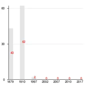 | 1997[14] | 2002[15] | 2007[16] | 2010[17] | 2017[1] |