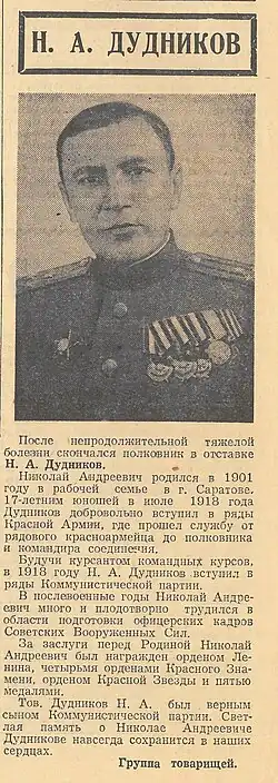 Николай Андреевич Дудников (15 мая 1901 года, Саратов — 3 августа 1962 года, Киев) — советский военный деятель, полковник (1939).