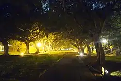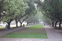Бульвар Вэньли с красными кирпичами и серой плиткой, густой тенью деревьев служит главной линией движения между колледжами.