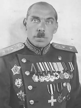 Черушев Н. С. Удар по своим. Красная Армия: 1938—1941. — М.: Вече, 2003. — 480 с. — (Военные тайны XX века). — 5000 экз. — ISBN 5-94538-366-X. - 1 2 3 Награждён в соответствии с Указом Президиума Верховного Совета СССР от 04.06.1944 «О награждении орденами и медалями за выслугу лет в Красной Армии». Дата обращения: 23 ноября 2015. Архивировано 4 августа 2017 года.
