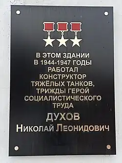 Во Всероссийском НИИ автоматики им. Н. Л. Духова установлена мемориальная доска работы скульптора Александра Ноздрина (2017).