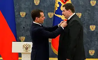 - Нагрудный знак «За заслуги перед обществом» III степени[27]