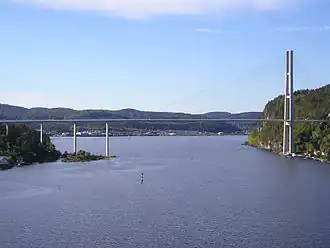 E18 в Норвегии. Участок трассы в губернии Вестфолл, под Тёнсбергом Архивная копия от 18 сентября 2016 на Wayback Machine