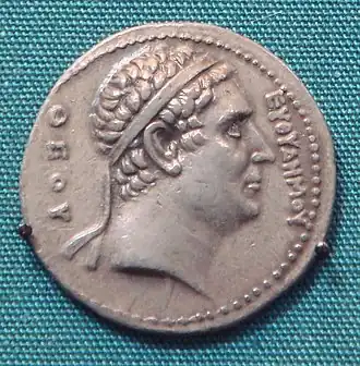 Из сообщения Полибия известно, что Евтидем был греком-ионийцем и происходил из Магнесии. В Бактрию издревле переселялись выходцы из Ионии, еще со времен Бранхидов — известного жреческого рода из Милета. Ионийцы оказали значительное влияние на монетную чеканку региона и на архитектурные традиции.